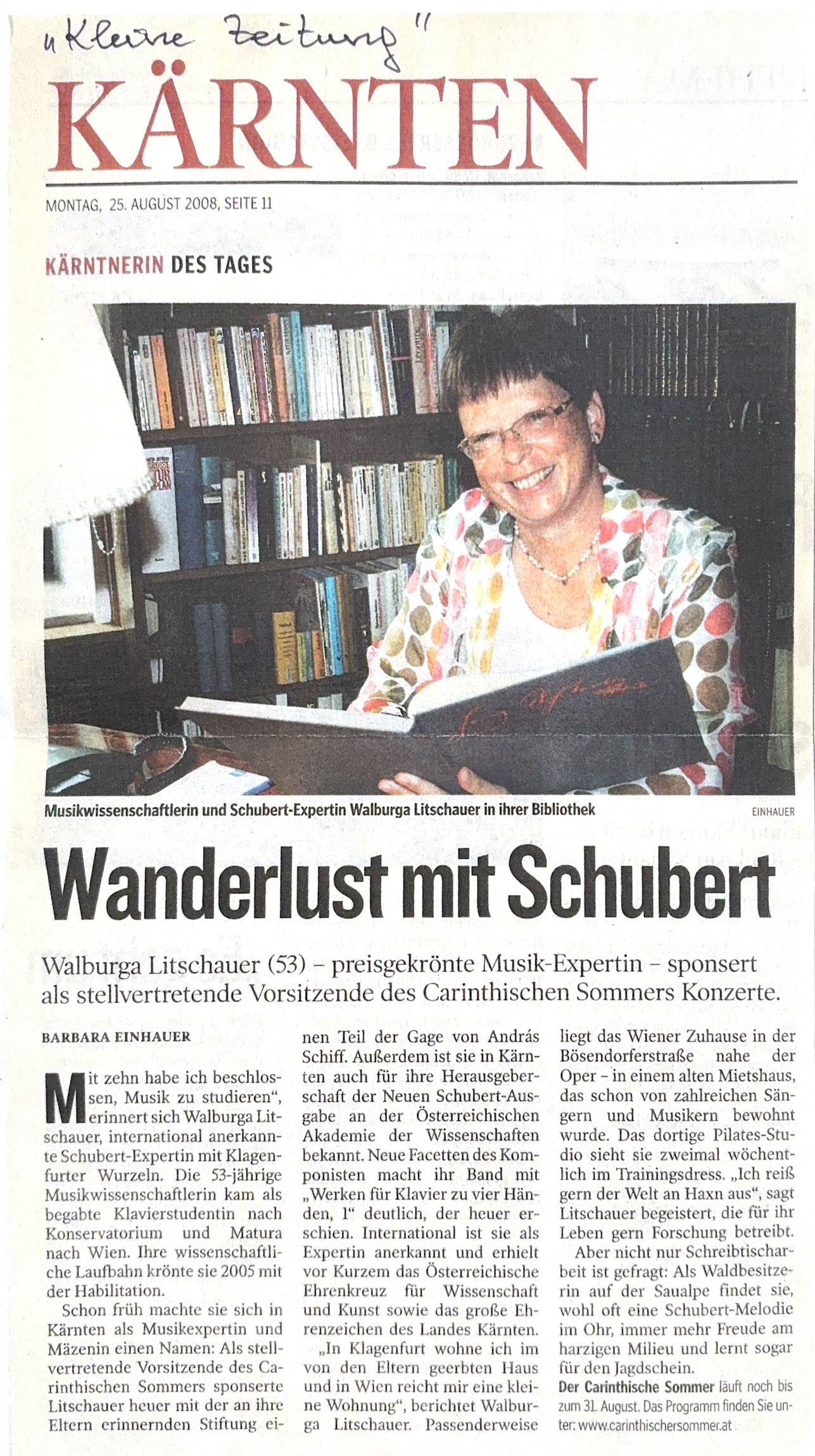 Wanderlust mit Schubert (Kleine Zeitung, Kärntnerin des Tages, 25. August 2008)